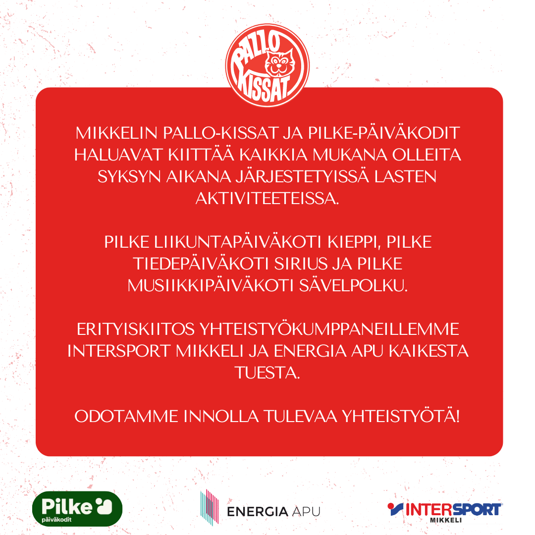 Lasten liikuttaminen kuuluu olennaisena osana Mikkelin Pallo-Kissojen toimintaan ja päiväkotikiertuetta jatketaan varmasti myös tulevaisuudessa.
