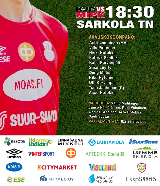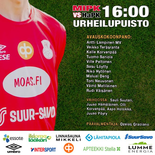 Pisteetön viikko – Pallo-Kissat jäi nollatulokseen Urskissa MiPK – HaPK 0-1 (0-1) Kolmonen, Itäinen Lohko B, Ottelukierros 7/22 29.5.2022 klo 16, Urheilupuisto, Mikkeli Maalintekijät: 39′ Lennart Voikar 0-1 MiPK-Kokoonpano: Antti Lampinen (mv) (C), Toni Neuvonen, Ville Peltonen, Niko Hytönen, Tuomo Sariola, Veikko Teräsranta, Sasu Löytty, Rudi Väisänen, Väinö Matilainen, Deng Malual, Kalle Korvenpää…
