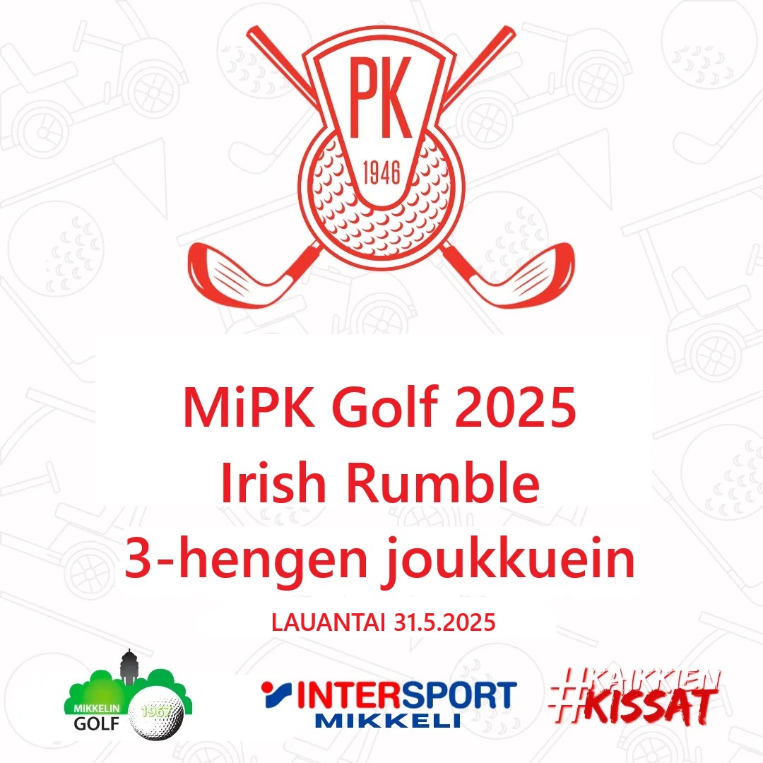 MiPK Irish Rumble pelataan 3 – henkisin joukkuein. Pistebogey peli, jossa 6 ensimmäistä väylää lasketaan joukkueen paras tulos. 6 seuraavaa väylää joukkueen 2 parasta tulosta. 6 viimeistä väylää joukkueen kaikkien pelaajien tulokset.