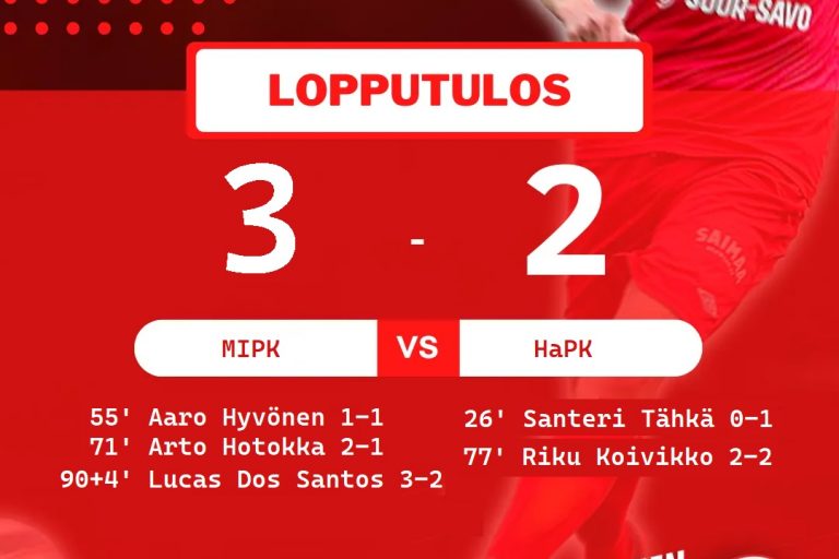 Aurinkoisessa syysillassa käyntiin potkaistusta Kissojen ja MP/2:n välisestä paikalliskamppailusta ei käänteitä ja jännitettä puuttunut, terävästi esiintyneen kotijoukkueen nautiskellessa ottelusta lopulta makoisan 3-2 voiton. Ensimmäinen puoliaika pelattiin alkuun hienoisessa ja sittemmin selkeässä Kissojen hallinnassa tehoduo Dos Santos-Haikosen dominoidessa isännän ottein vasenta kenttäpuoliskoa. Ensimmäinen maali syntyi kuudennella minuutilla Lucas dos Santosin keskityksen leijaillessa yllätyksellisesti suoraan yläkulmaan. MP/2:n…